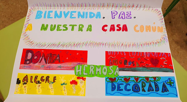 Hace una semana celebramos en el cole el día mundial de la Paz. Hicimos un trabajo precioso en el que aprendimos que lo más importante para que haya Paz en el mundo es que nos cuidemos los unos a los otros y el planeta en el que vivimos.